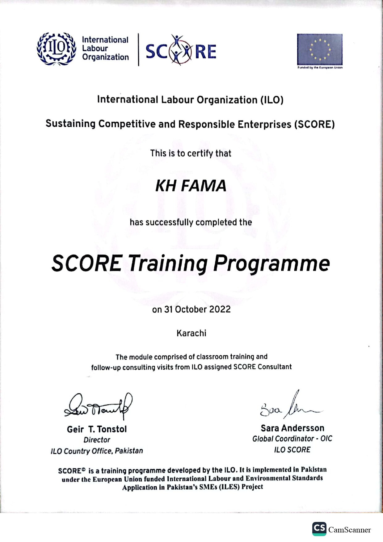 Certificates the company has earned (OekoTex shared above, ISO and ILO’s training to follow)